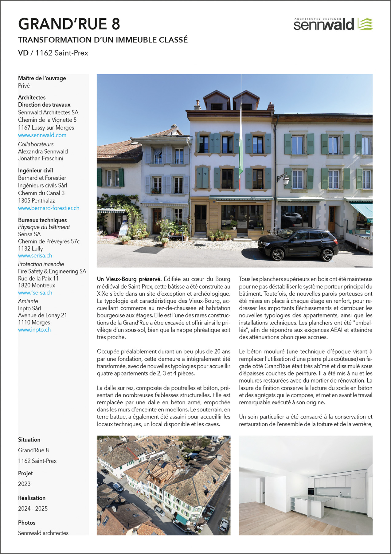 Une très bonne relation avec les autorités compétentes, ainsi qu’avec l’ensemble des maîtres d’état, a été un atout essentiel à la réalisation particulièrement réussie de ce projet.